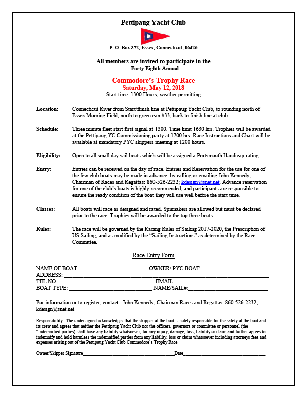 Please see the included announcements for upcoming opportunities to race at PYC and to volunteer to assist Race Committee. â